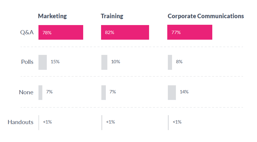 10. 78% of marketing webinars use live Q&A, but only 15% use polls.